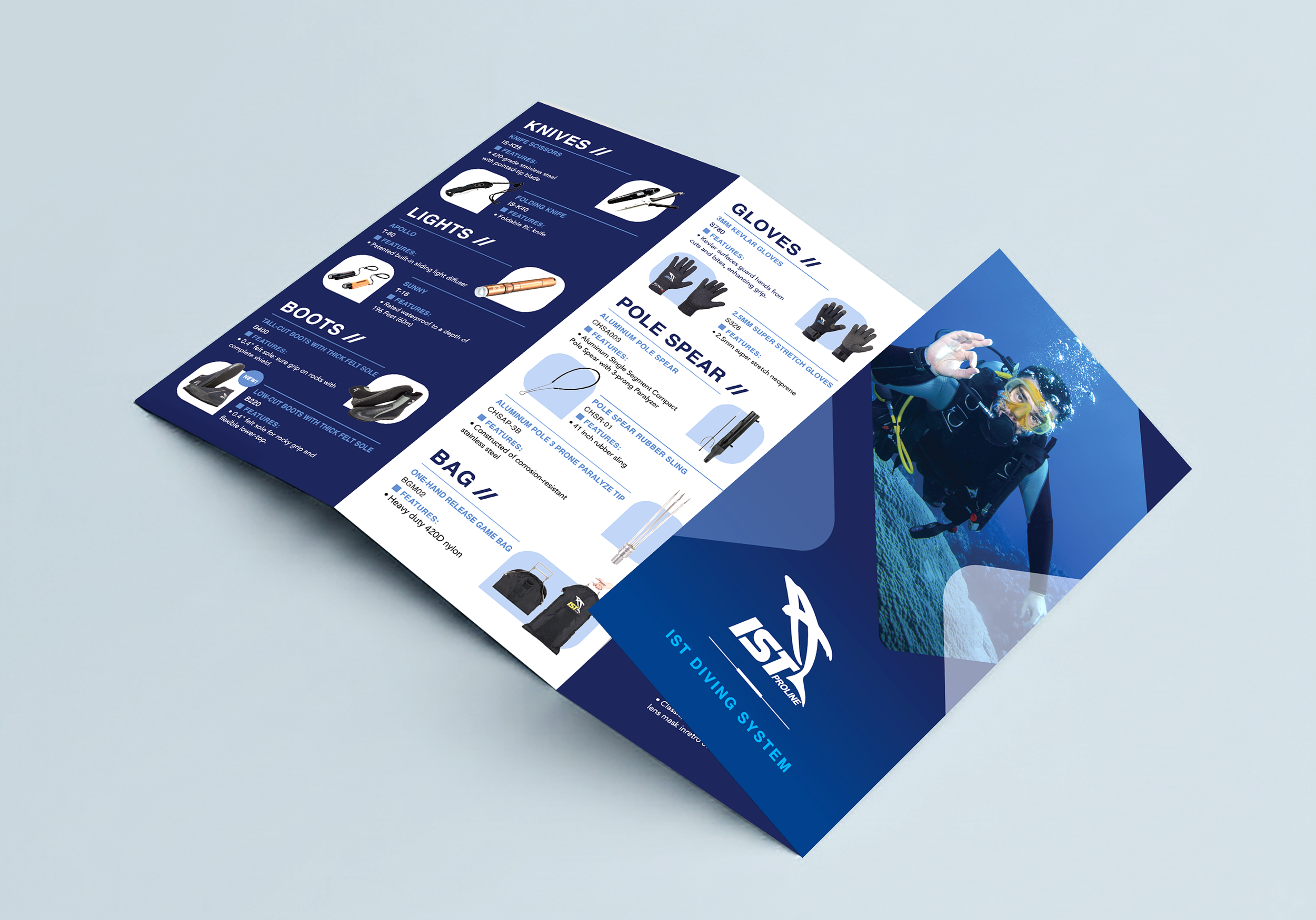 Brochure design conveying IST Diving’s safe and professional ethos.